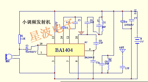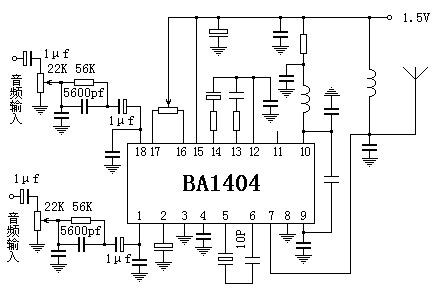 BA1404是一个调频立体发射专用电路,振荡电路仍是LC电路。这是一个典型的应用电路,原理自己看吧。