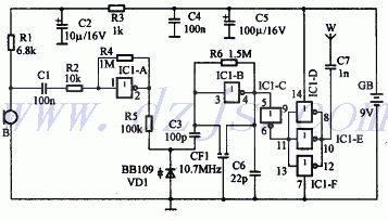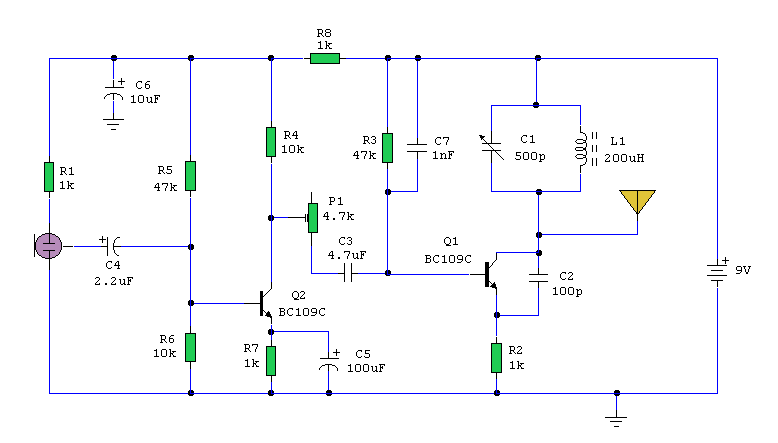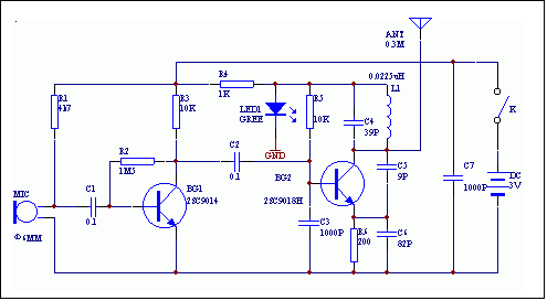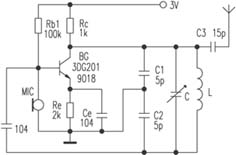 Re:小调频发射器电路 哪位有调制电路的资料,要求频率可调,稳定实用,可以驳接丙类功放