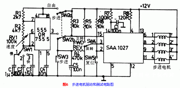 步进电机用微处理器或专用步进电机驱动集成电路,很容易实现控制。例如常用的SAAl027或SAAl024专用步进电机控制电路。
