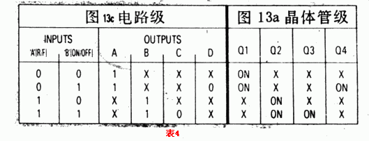 停止是相互独立的。这个电路也具有“飞轮效应”。图13(a)和图]3(c)的电路工作的逻辑真值表如表4列出。