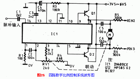 上述伺服电机型常用于多路遥控系统。图25示出了四路数字比例控制系统的波形图。