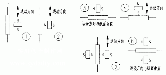 方式4:见图4,运动方向同3,但磁铁的N(或S)极面向触点,此时无论远近,干簧管均不吸合。