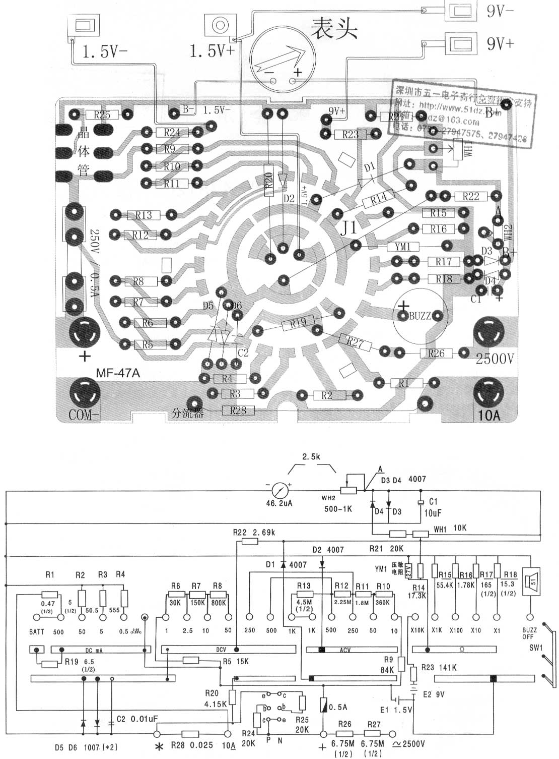 47万用表的原理图与安装说明,请本文后面的内容。