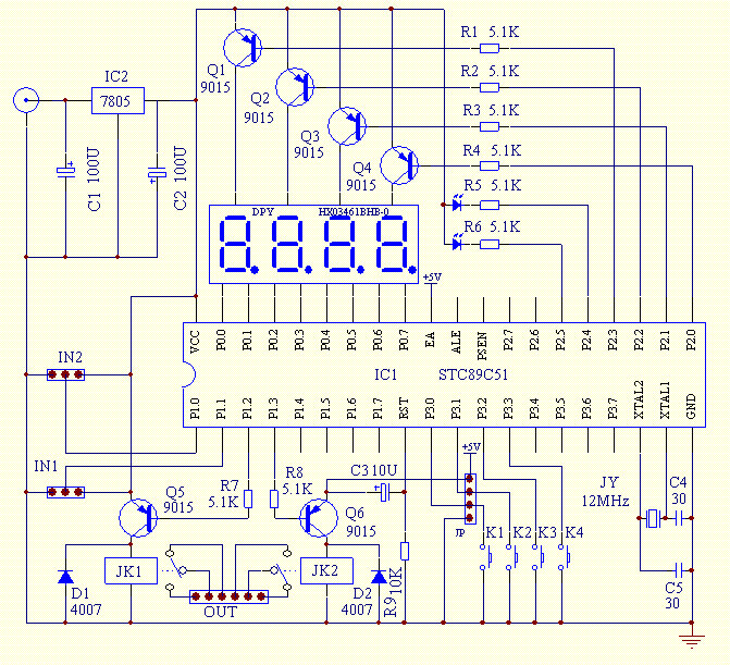电路板光板,使用T89C51、52、STC89C51、52等相兼容单片机芯片。需要你自己写程序。