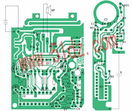 套件说明:玻纤印刷电路板2块,所有元件一袋,原理图,印刷电路板图、元件清单,原理制作说明、外壳等等。